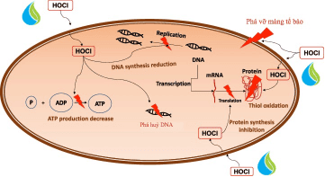 Các phân tử Axít Hypoclorơ phá vỡ màng tế bào vi sinh vật.